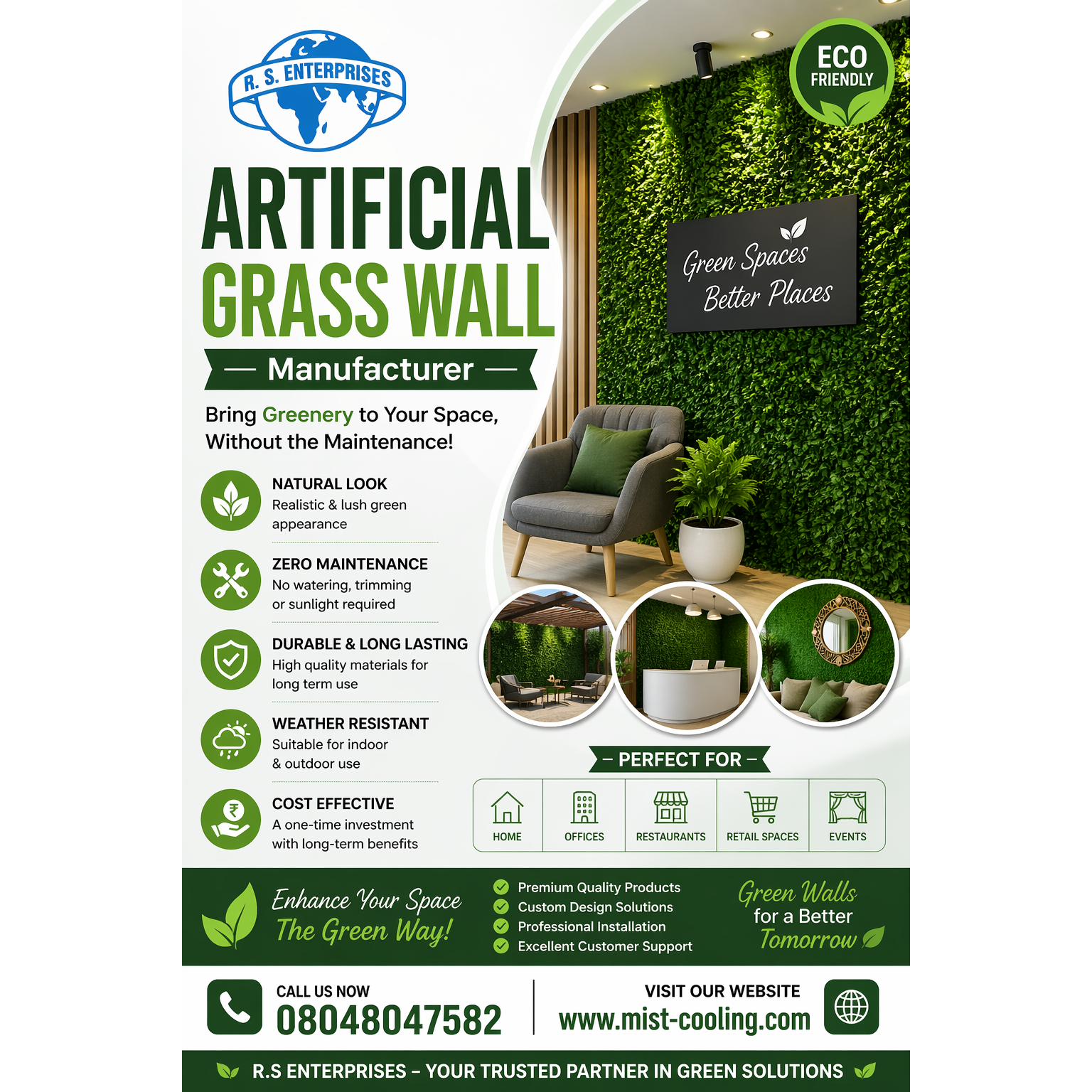 R.S ENTERPRISES is a leading artificial grass wall manufacturer offering premium, low-maintenance green wall panels for homes, offices & commercial spaces. Contact us today!